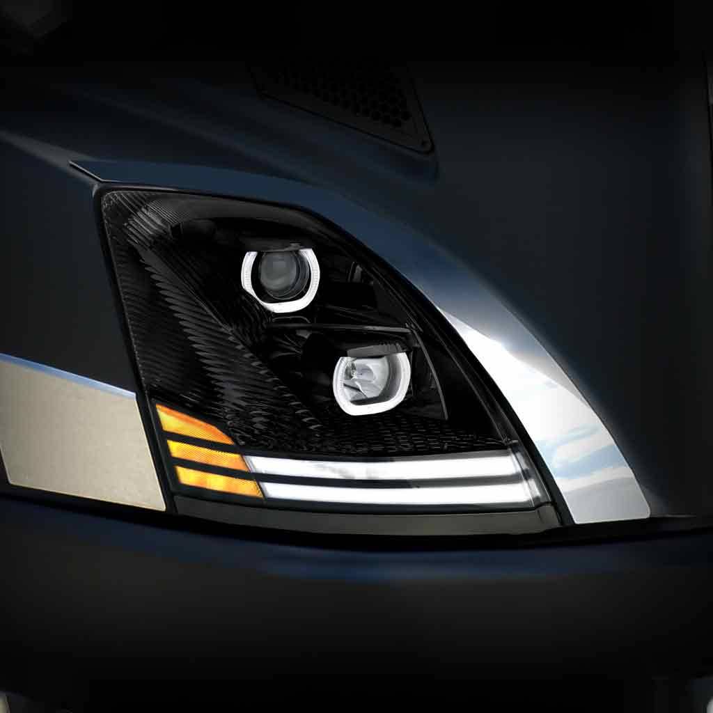 TRUX - TLED-H55 - FANAL VOLVO VNL 3RA GENERACION CON 2 TIRAS DE LEDS FONDO NEGRO LADO PASAJERO