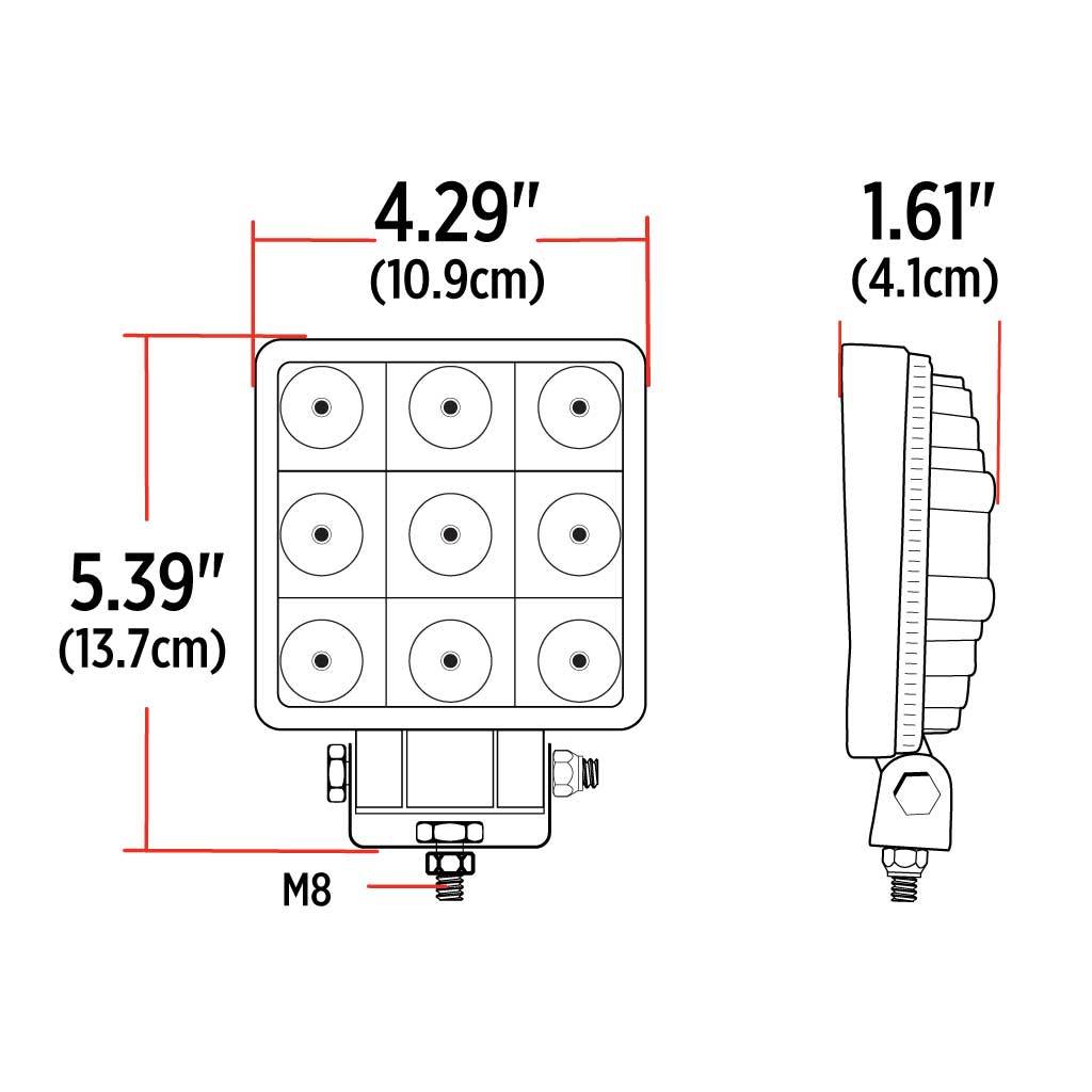 TRUX - TLED-U93 - LAMPARA DE TRABAJO LEDS DE ALTA POTENCIA CUADRADA UNIVERSAL STELLAR 9 DIODOS - 1350 LUMENES