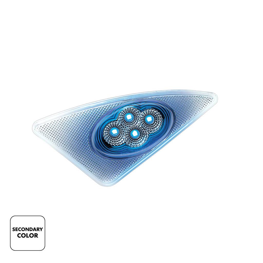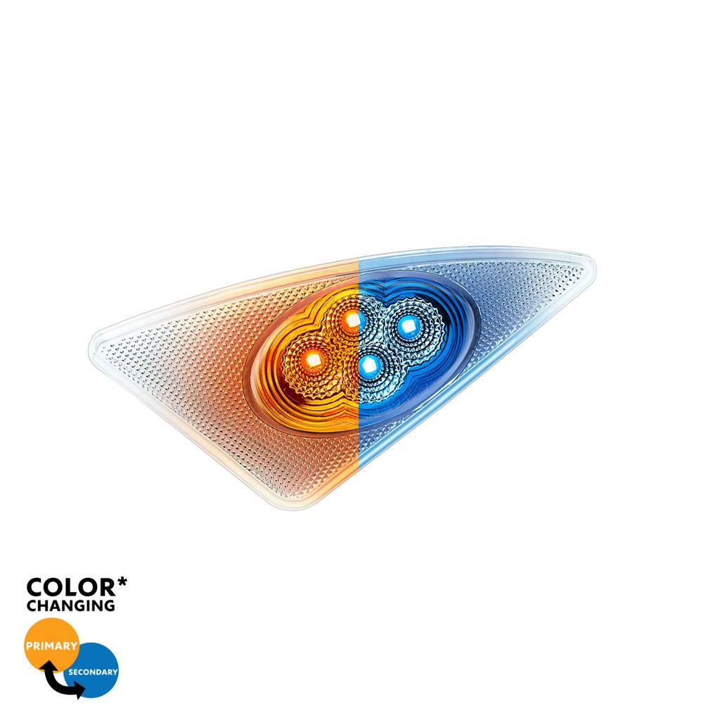- LED primario de doble función brillante y LED auxiliar de color secundario.