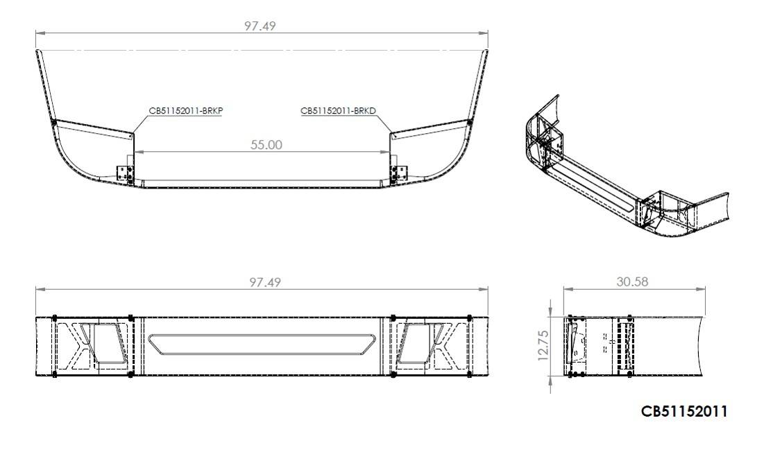 EXFLEX - CB51152011 - DEFENSA CROMADA VOLVO VNL 64T, 630, 670, 780 13" SET BACK AXLE CON ORIFICIOS DE NIEBLA